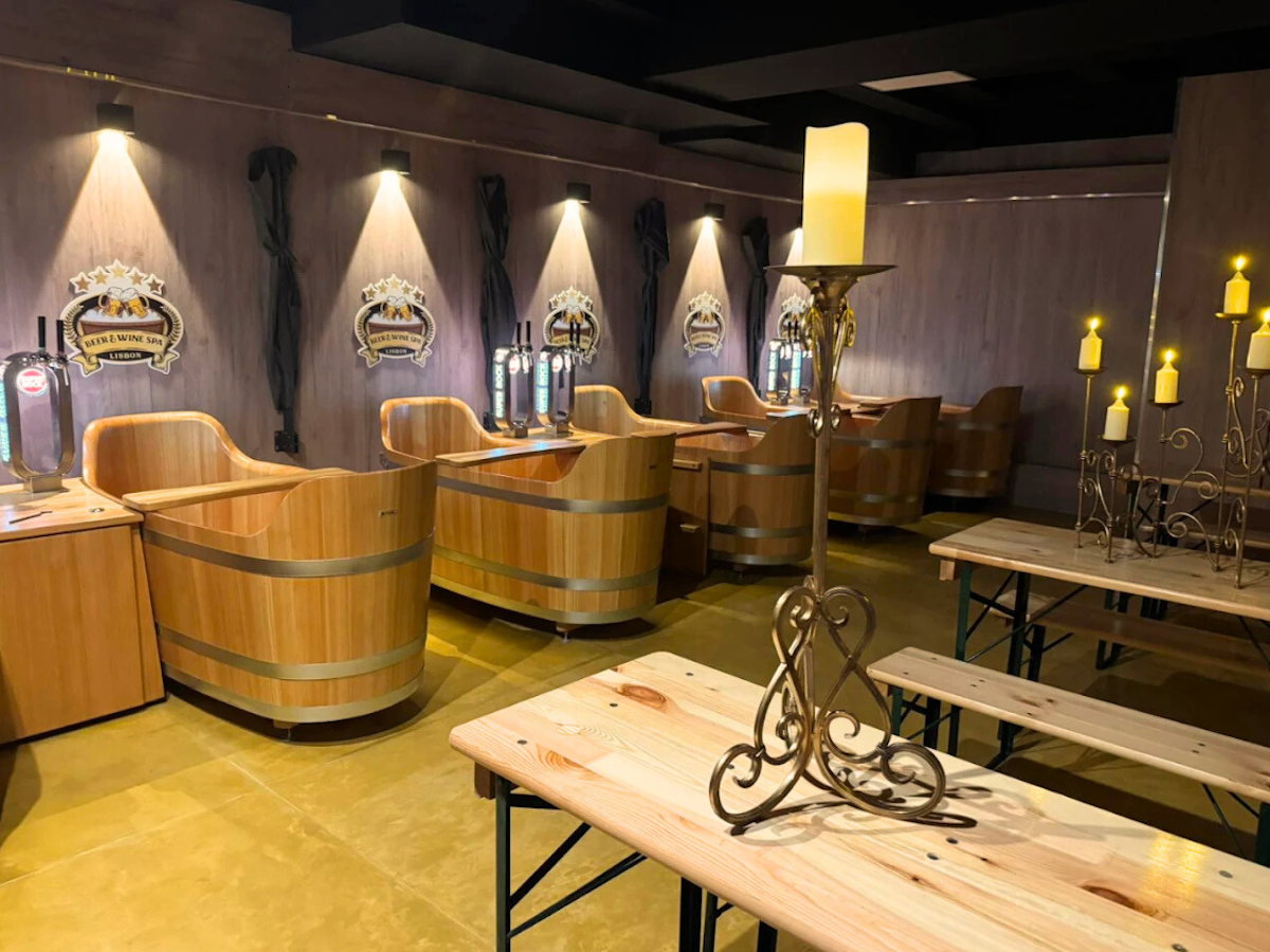 É exatamente aí que entra o Beer & Wine Spa, no Chiado, em Lisboa: um circuito de relaxamento com banheiras de hidromassagem, sauna e zona lounge, onde as bebidas fazem parte do ritual, com uma torneira sempre pronta a servir.